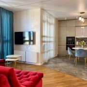 В квартире есть все необходимое для комфортной жизни. Вся мебель и бытовая техника. В пешей доступности торговый центр и супермаркет, рядом множество магазинов, кафе. Парк в 3 минутах ходьбы.
