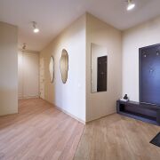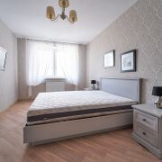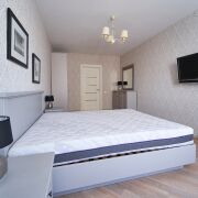 Квартира двухкомнатная с просторной гостиной – кухней, спальней, двумя санузлами. Также есть оборудованная гардеробная и большой шкаф-купе. Кухня с выходом на лоджию.