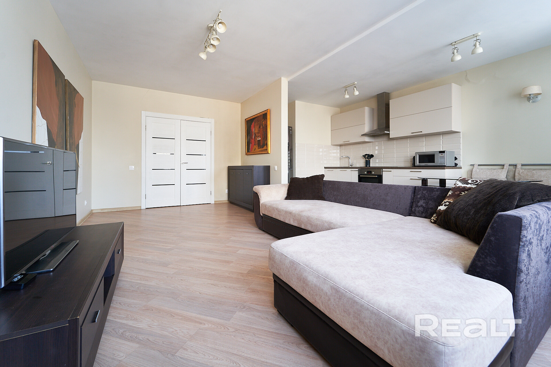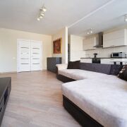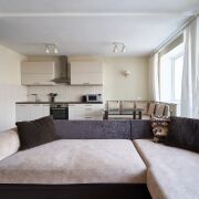 Все необходимое для комфортной жизни из мебели (угловой диван, встроенная кухня, обустроенная спальня) и бытовой техники (телевизор, стиральная машина, бойлер, посудомоечная машина, варочная поверхность, духовой шкаф, вытяжка, холодильник).