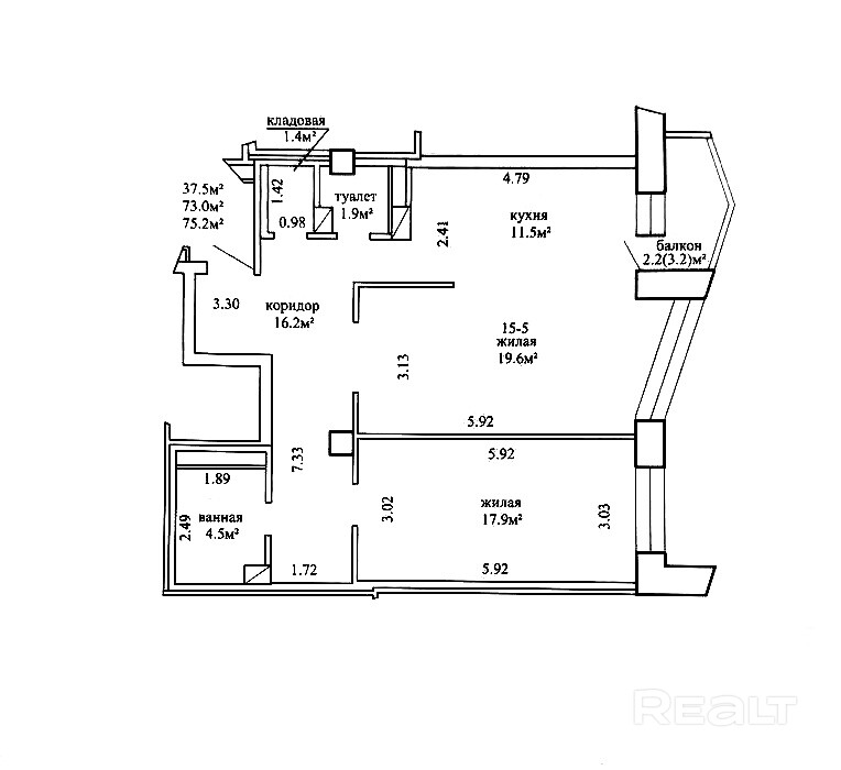 75.2 м²