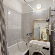 Из бытовой техники: холодильник, СВЧ-печь, духовой шкаф, плита газовая, стиральная машина, пылесос. Сан. узел: зеркало, полотенцесушитель, унитаз и ванная.