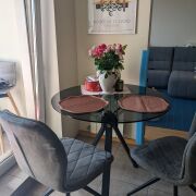 Сдается светлая и уютная квартира 69 м² в современном доме. 10/12 этаж, две застекленные лоджии с видом на город, балкон. Планировка: спальня с кроватью 180 см, гостиная, большая ванная с окном. Второй санузел. Качественный ремонт, квартира полностью готова к заселению. Кухня с техникой Bosch: ПММ, индукция, холодильник, стиральная машина. Рядом магазины, школы, ТЦ, парк. Только по договору, без животных, не курящим.