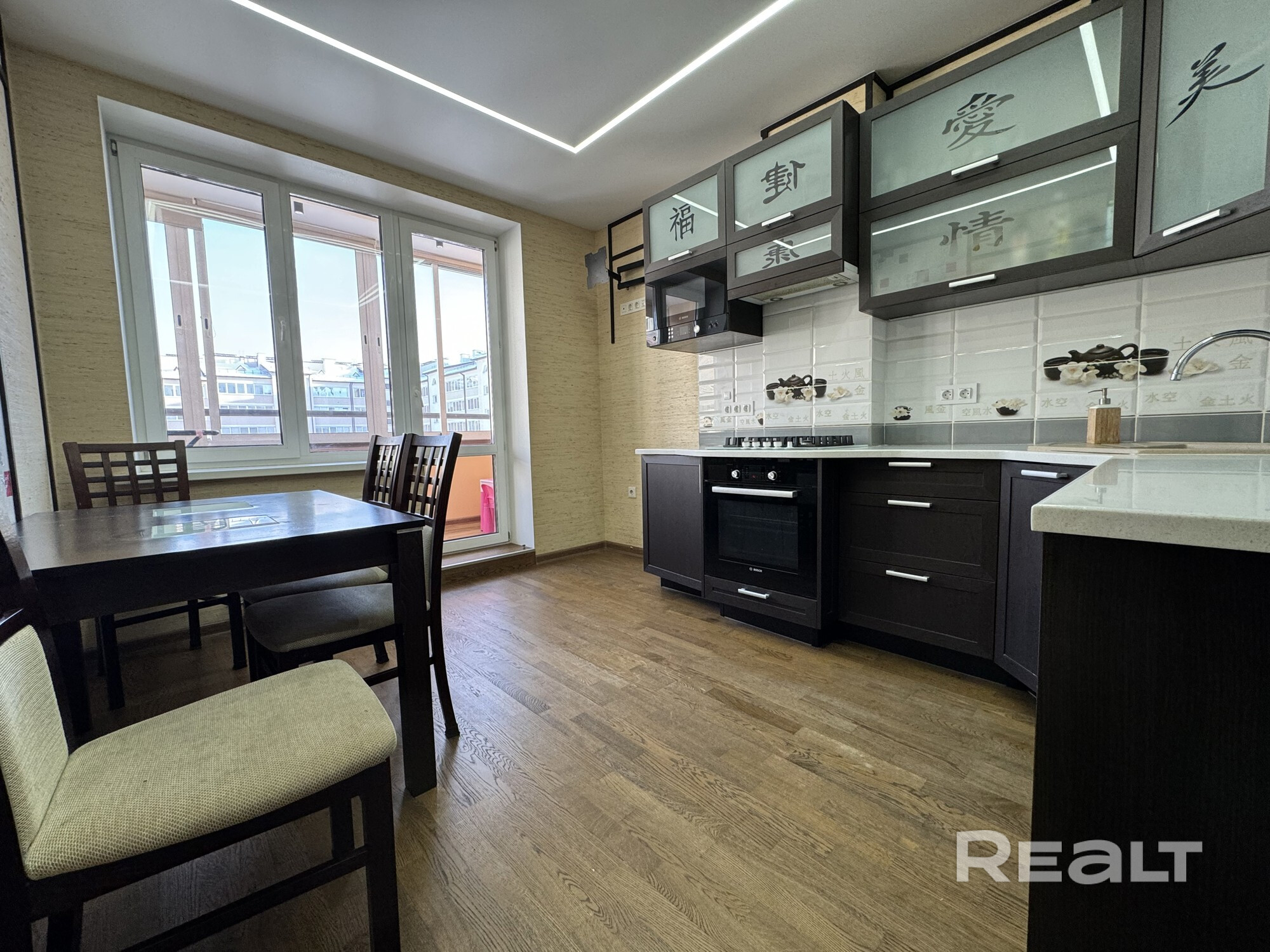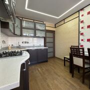 В квартире выполнен дизайнерский ремонт по эксклюзивному проекту в восточных мотивах. Вся мебель корпусная встроенная.