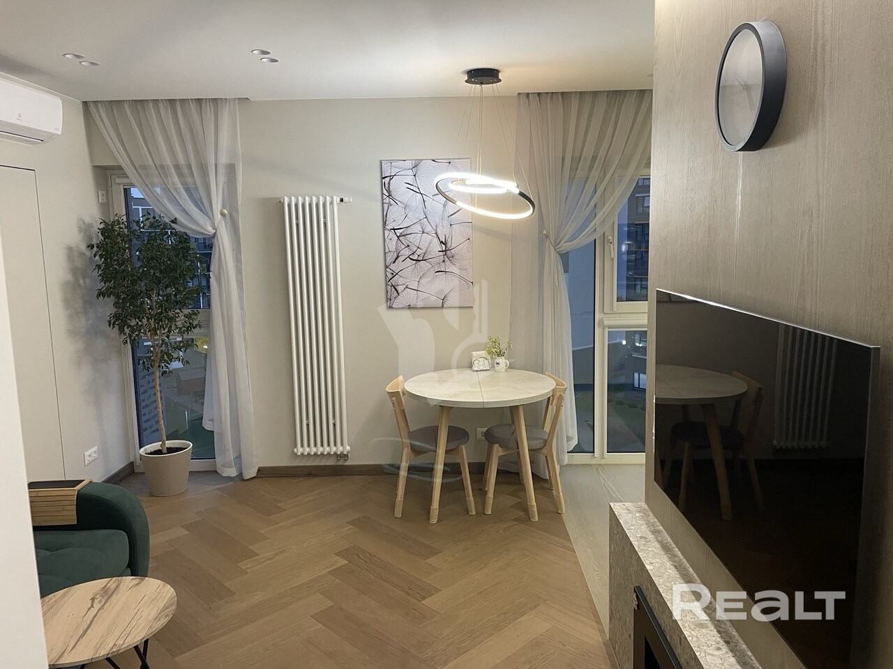 Современный ремонт: квартира чистая и свежая, готовая к заселению. Все необходимое оборудование, включая холодильник, стиральную машину и плиту, уже установлено.