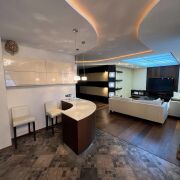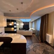 В квартире сделан качественный дизайнерский ремонт, все продумано до мелочей. Ремонт делали для себя, в аренду не сдавалась. Две раздельные комнаты, просторная кухня-гостиная, кабинет.