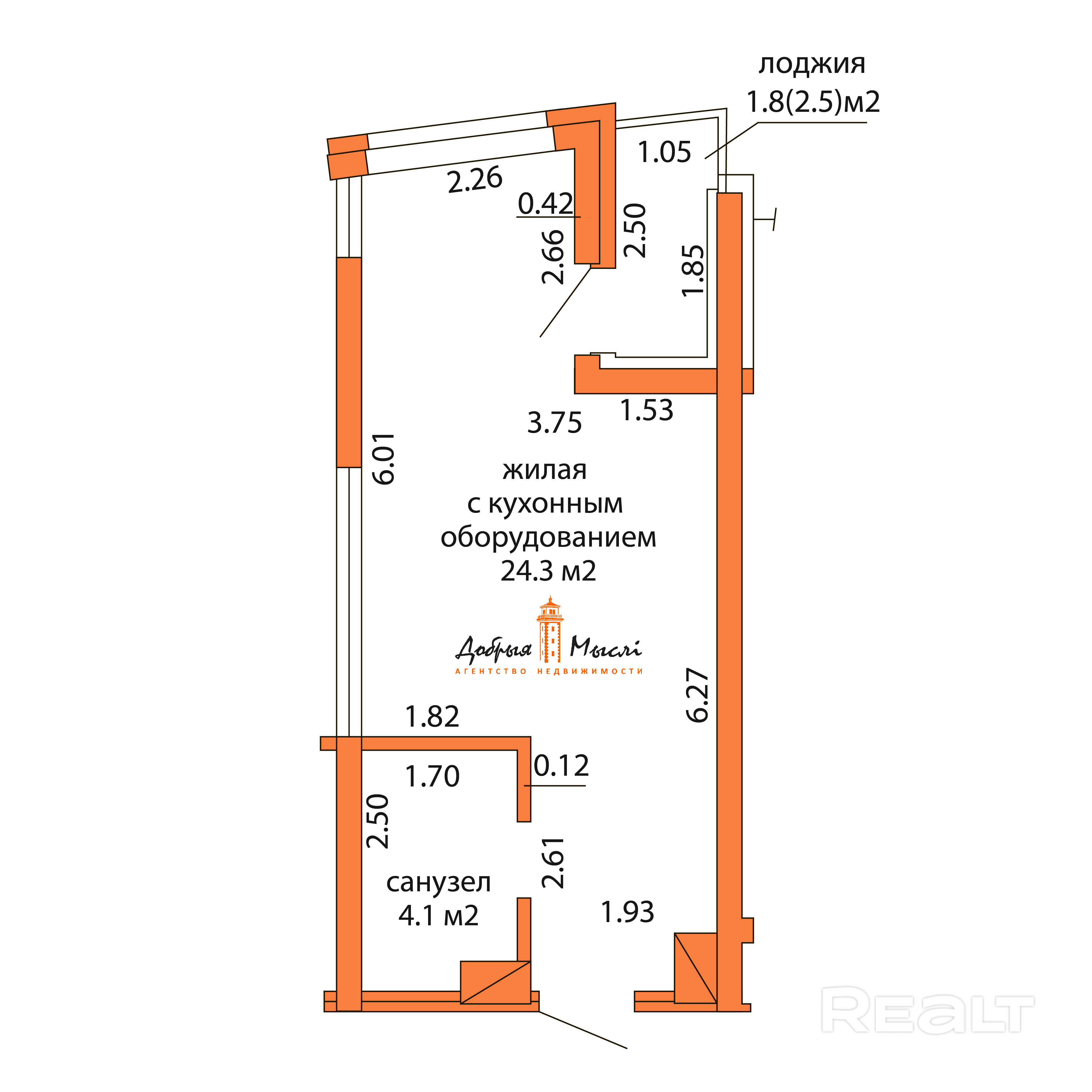 Параметры квартиры: площадь по СНБ 30,2 кв.м., общая 28,4 кв.м., жилая с кухонным оборудованием 24,3 кв.м.