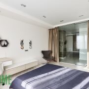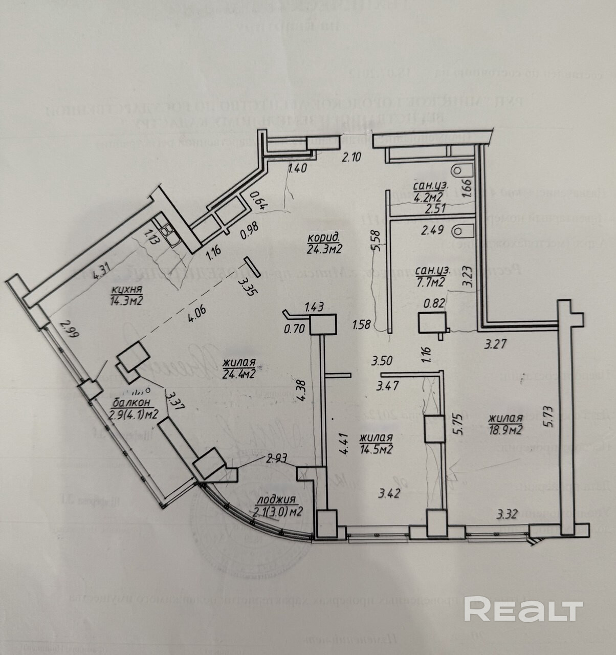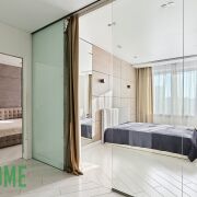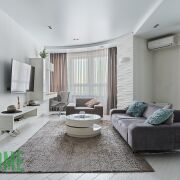 Квартира имеет общую площадь по СНБ -113.3 кв.м., общую площадь 108.3 кв.м., жилую площадь - 57.8 кв.м., расположена на 5 этаже 25-ти этажного дома. Планировка квартиры включает: просторную гостиную со столовой зоной, кухню, 2 спальни, гардеробную, коридор, сан. узел и балкон.