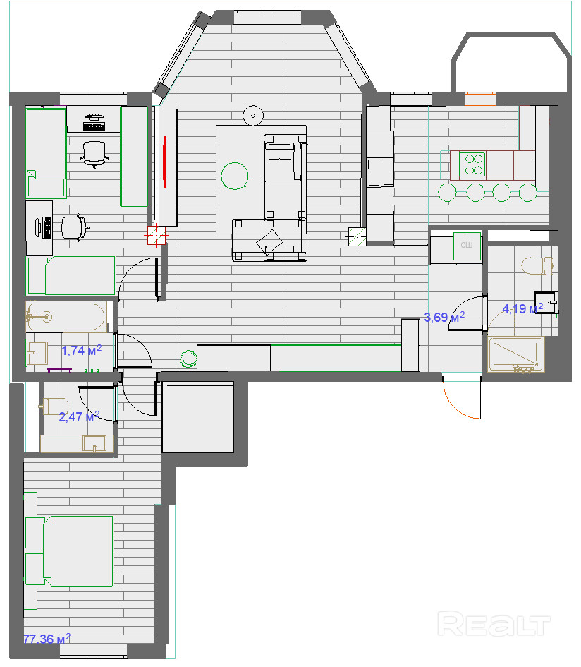 Снять 3-комнатную квартиру, г. Минск, ул. Монюшко, 26