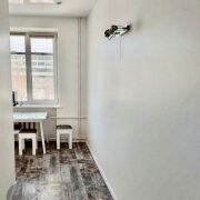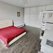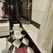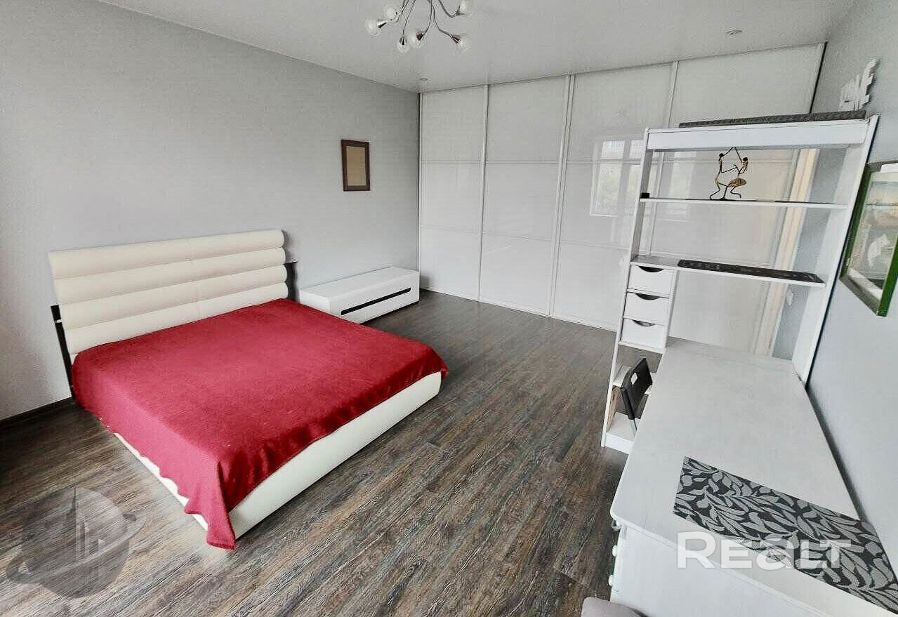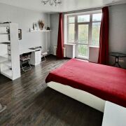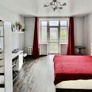 В квартире сделан хороший ремонт, есть все необходимое для жизни: встроенный холодильник, газовая плита и стиральная машина. В комнате установлен большой раздвижной шкаф во всю стену, есть кровать, письменный стол и тумба под телевизор. На кухне есть хороший раздвижной стол и стулья. Также есть открытый балкон.
