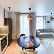 Современная 1-комнатная квартира с отдельным спальным местом в ЖК "Гранд Хаус". В квартире выполнен дизайнерским ремонт с использованием натуральных материалов. Есть все для комфортного проживания: посудомоечная машина, стиральная машина, духовой шкаф, телевизор, комплект посуды и многое другое. Во дворе установлены шлагбаумы. Окна во двор. Можно с животными.