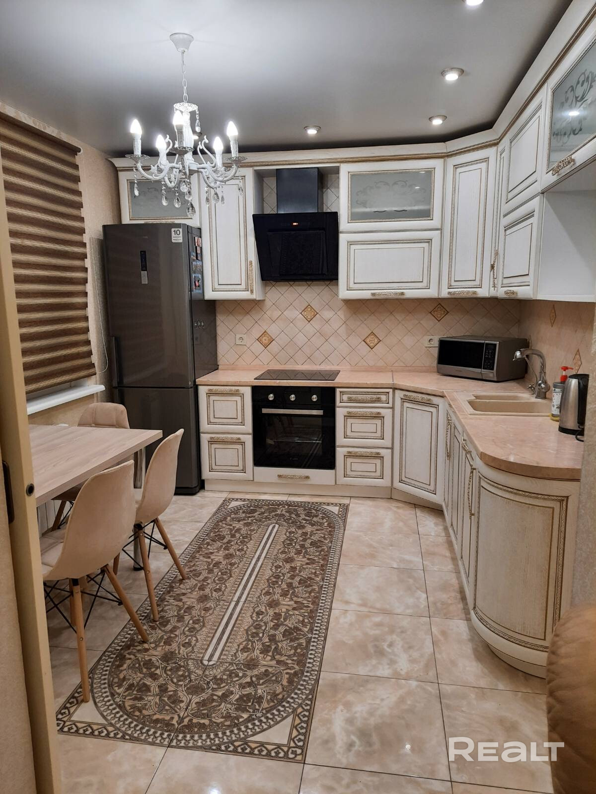Качественный ремонт квартиры выполнен из современных материалов. Большая прихожая с встроенным шкафом. Просторная и светлая гостиная с кондиционером, кожаный диван и большое кресло, телевизор . Кухня оборудована полностью, укомплектована всей необходимой техникой :посудомойка, микроволновая печь, духовой шкаф, электро плита, чайник, холодильник. Две отдельные спальни: одна с двуспальной кроватью , двумя тумбами телевизором, выходом в лоджию; другая 1,5 спальной кроватью, письменный стол.