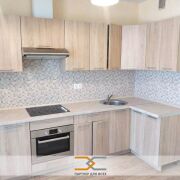 Квартира готова к заезду. В настоящее время есть только кухонная мебель со встроенной варочной поверхностью и духовым шкафом, есть холодильник.