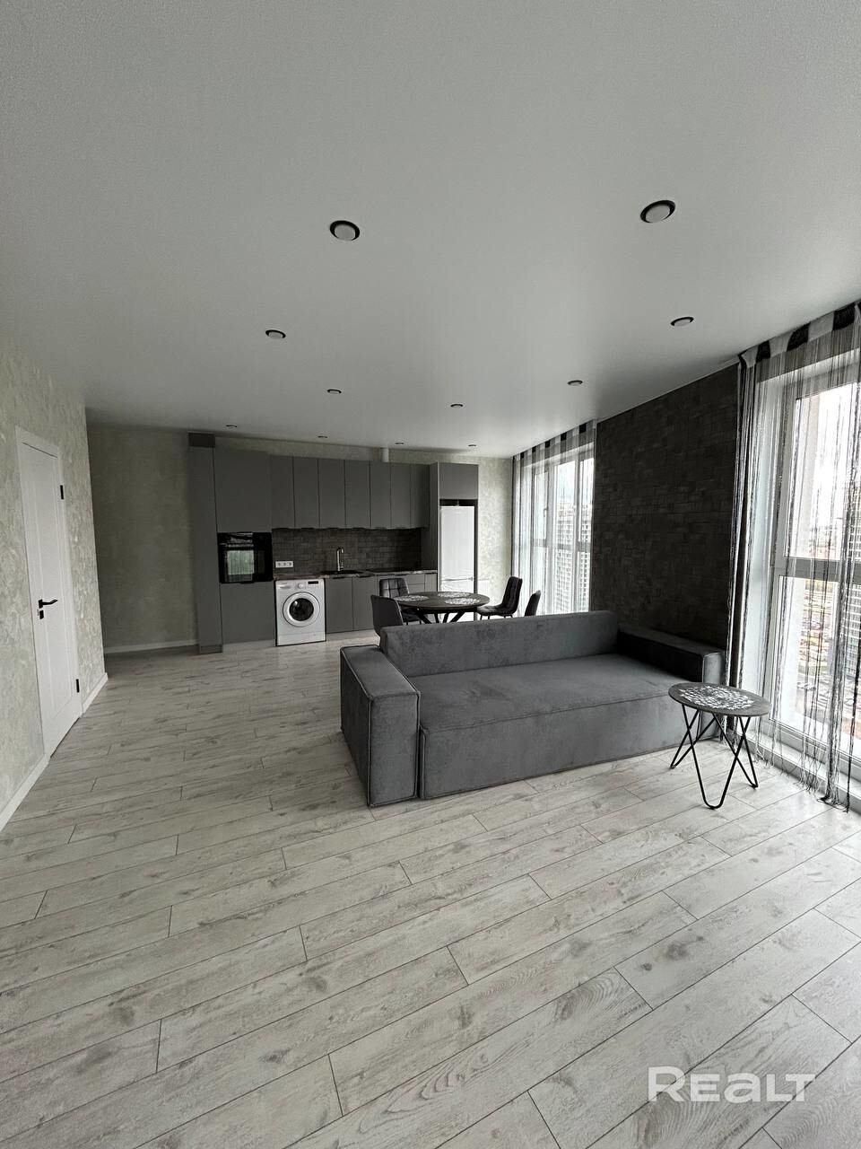 На длительный срок сдается 2-комнатная квартира, гостиная совмещены с кухней, спальня отдельно.
