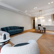 • Просторная кухня-гостиная и две изолированные спальни с гардеробными.