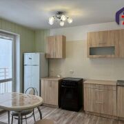 -На кухне установлен функциональный гарнитур. Есть холодильник, плита.