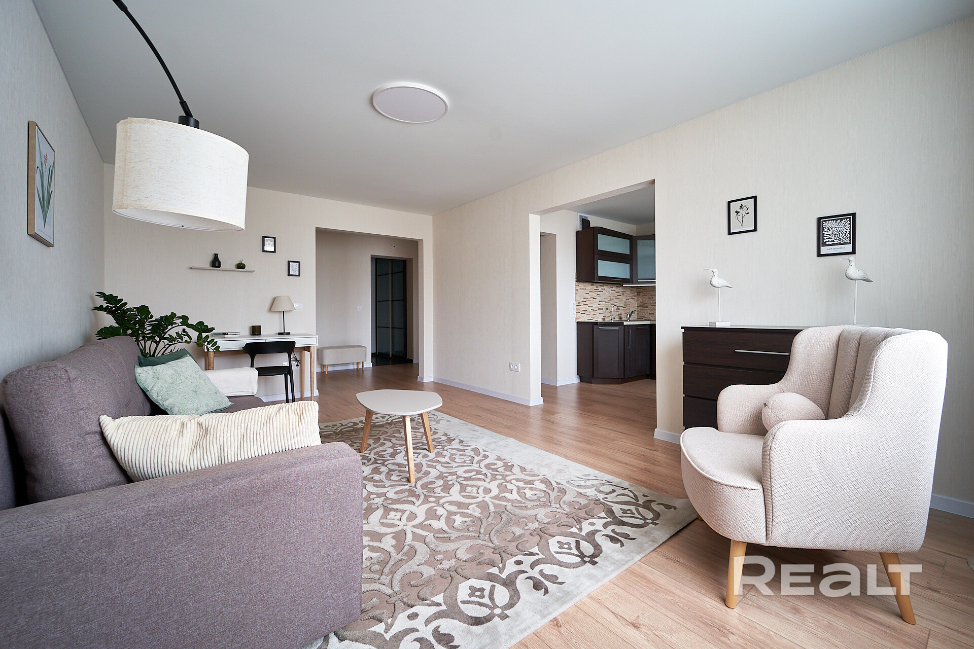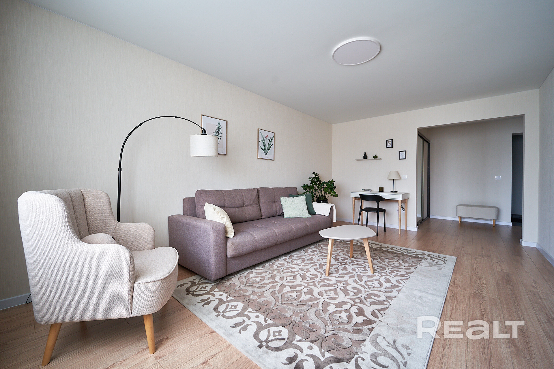 Сдается 1-комнатная квартира 51 м² (7 этаж). Идеально для тех, кто ценит стиль и комфорт. • Интерьер: Дизайнерское зонирование, рабочее место для удаленки, уютная кухня-столовая. • Хранение: Вместительная гардеробная + зеркальный шкаф-купе. • Техника: Плита, СВЧ, холодильник, стиральная машина. • Локация: Парки, кафе и спортзалы рядом. Условия: $450/мес +коммуналка +залог. Только для граждан РБ.Без животных.Долгосрочно. Ваш идеальный дом готов к заселению. Звоните!
