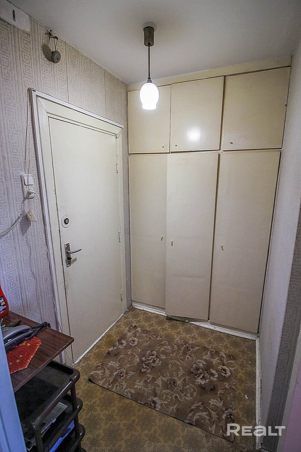 В квартире имеется: шкафы, холодильник, стиральная машинка, кровать односпальная.