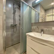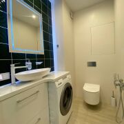 В квартире есть все необходимое для вашего комфортного проживания: посудомоечная машина, свч-печь, духовой шкаф, кондиционер, телевизор, система "теплый пол", высокоскоростной интернет, холодильник, стиральная машина, вытяжка, варочная панель, посуда , столовые приборы, мелкая бытовая техника(утюг, чайник, пылесос), кухонные принадлежности. Санузел с ванной и душевой кабиной раздельный. Продуманы системы хранения вещей-по всей квартире установлены встроенные шкафы.