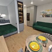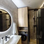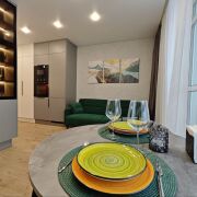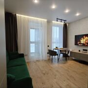 Предлагается уютная квартира с дизайнерским ремонтом на 22 этаже, идеально подготовленная для комфортного проживания. В наличии всё необходимое: современная техника, посудомоечная машина, телевизор, робот-пылесос с функцией влажной уборки, стиральная машина, посуда и столовые приборы, просторные шкафы и множество мест для хранения. Удобная кровать с подъёмным механизмом, диван для отдыха и место на лоджии для расслабления. Продуманы различные сценарии подсветки для создание доп. уюта.