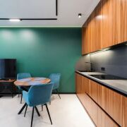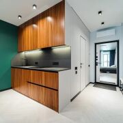 Гостиная и спальная зона: на полу уложен практичный и стильный кварцвинил, натяжные потолки с теневым профилем, трековые светильники и различные сценарии освещения позволяют настроить атмосферу под ваше настроение. Большое количество скрытых систем хранения – порядок и удобство в каждой детали. Установлен кондиционер – комфорт в любое время года. Стены окрашены моющейся краской – легко поддерживать чистоту.