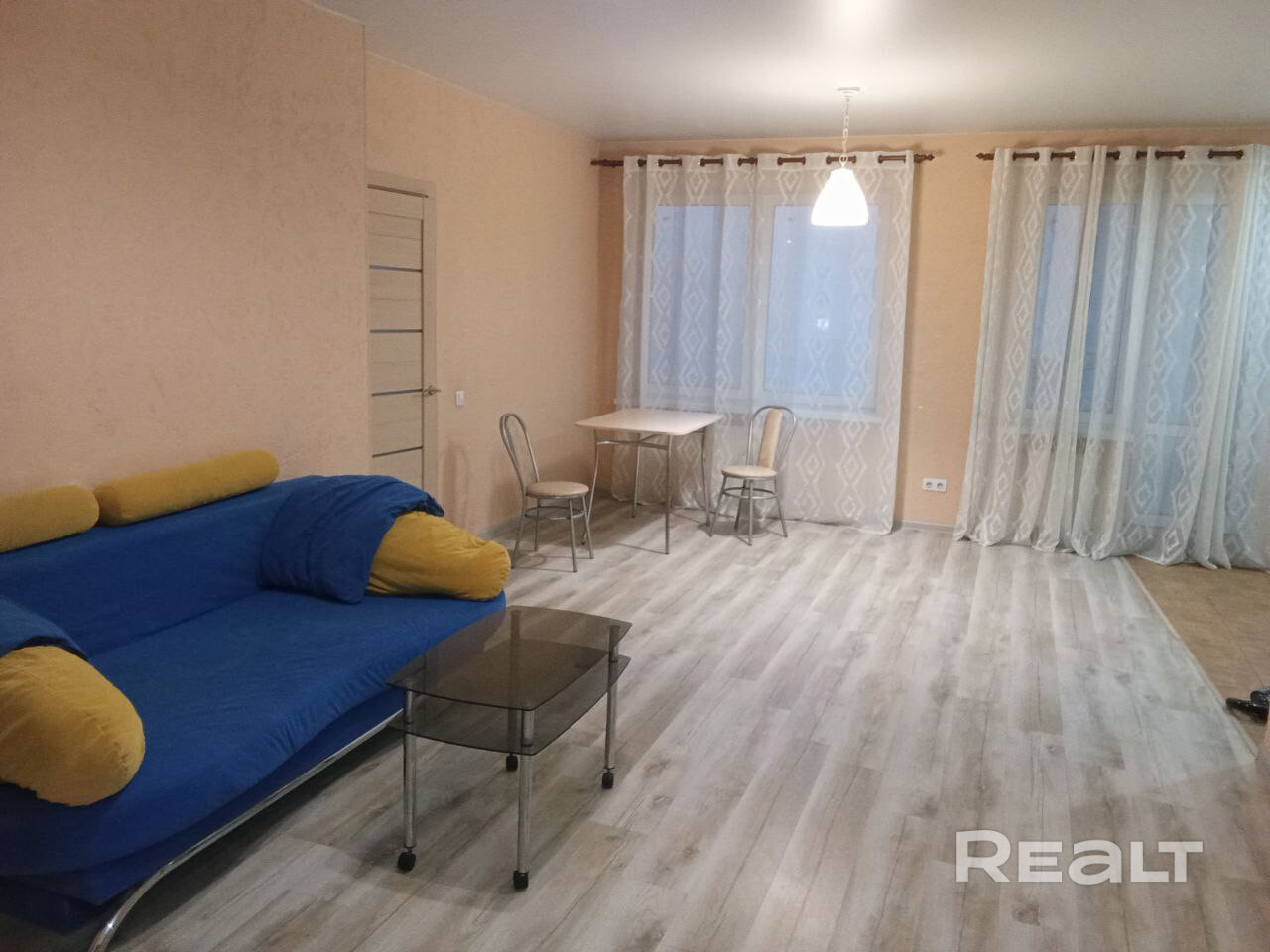 В квартире выполнен современный ремонт, квартира оборудована современной бытовой техникой Просторная гостиная, выделенная кухня, спальня.