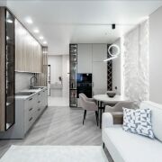 Сдается новая 2-комн. квартира с дизайнерским ремонтом возле ст.м. Грушевка. Квартира полностью укомплектована всем необходимым и готова к заселению. Вся мебель и техника абсолютно новые. Просторная и стильная кухня-гостиная, уютная спальня с приятной атмосферой тишины и комфорта. Застекленная лоджия с террасными креслами и столиком. 16 этаж открывает красивый вид на проспект. Современный дом.