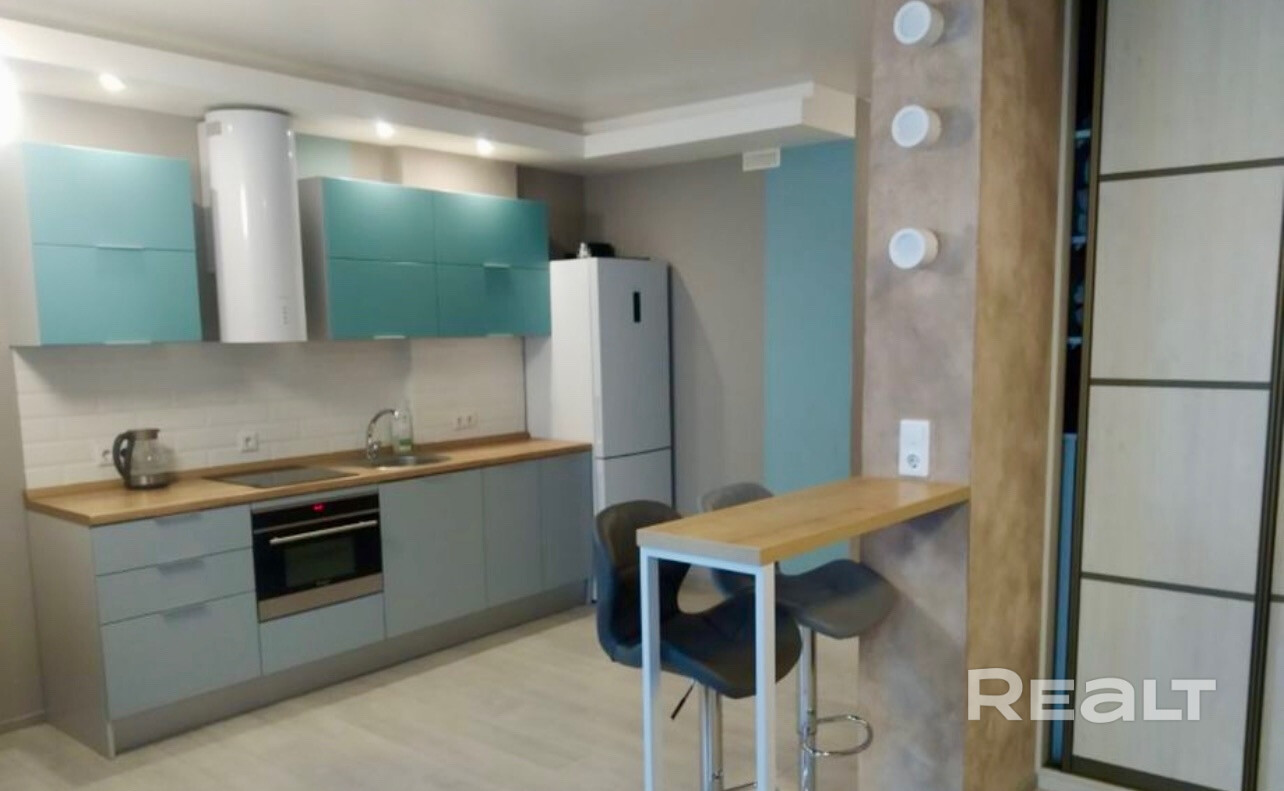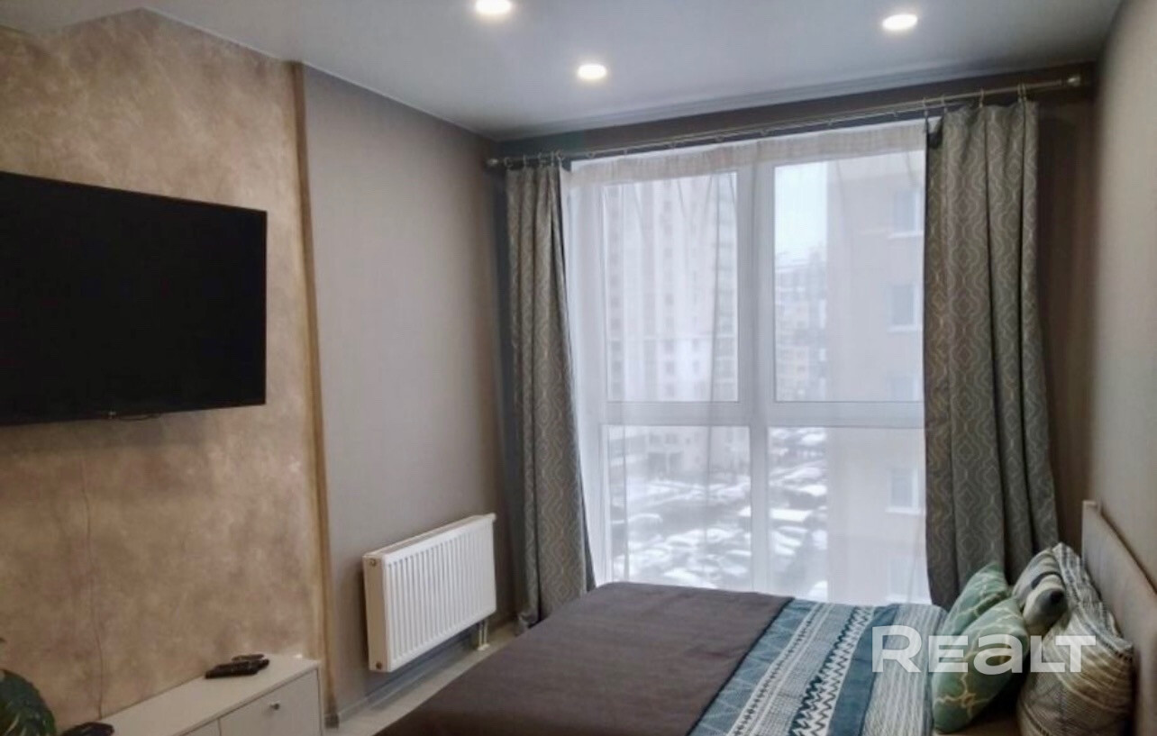 Престижный жилой комплекс Маяк Минска. Квартира студия с современным ремонтом, полностью укомплектована мебелью и бытовой техникой Общая площадь 46кв, 34 кв жилая 5 этаж из 20 Коммунальные платежи небольшие, прописаны. Квартира готова к заселению! Развита инфраструктура района, по типу город в городе. Кафе, рестораны, магазины, торговые центры, спорт залы, все в шаговой доступности! Метро Восток 5 мин пешком Залог за имущество в размере месячного платежа.