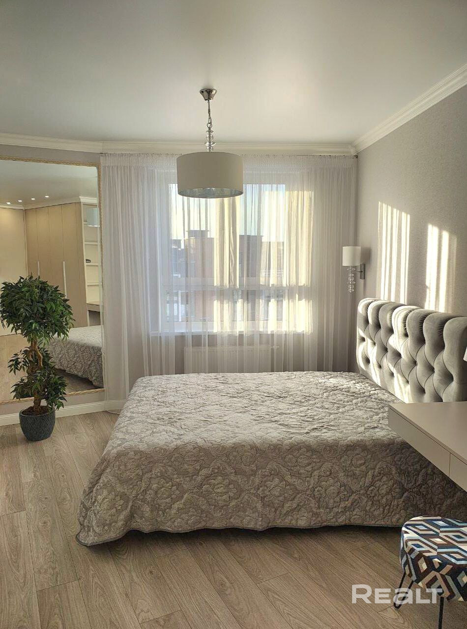 Первое заселение!Дизайн квартиры разработали ведущие дизайнеры программы«Квартирный вопрос» YouTube с 17минуты https://www.youtube.com/watch?v=OvleBDozDaM Шикарный вид на Свислочь,с изголовья кровати. Квартира оборудована техникой и мебелью:эргономичные шкафы,качественная сантехника,стир.машина,датчики протечки,бойлер. Инверторный кондиционер(на холод/тепло),телевизор, встроен.холодильник,духовка,микроволновка,индукцион. плита,бесшумная вытяжка,посудомойка,робот-пылесос.Предоставим машино-место