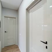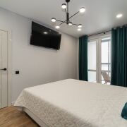 Напольное покрытие кварцвинил, стены окрашены в современные оттенки, потолок натяжной, большое количество естественного и искусственного освещения.