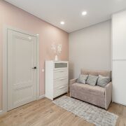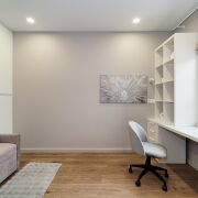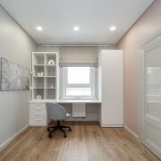 Кабинет/детская: пространство площадью 9.5 м2, в котором прекрасно размещается спальное место, рабочая зона и места для хранения.