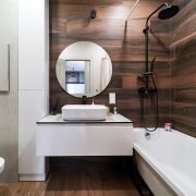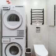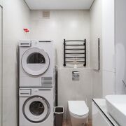 Санузел: совмещенный, в современной плитке. Оснащен лучшей сантехникой. Установлена ванна, умывальник, инсталляция, сушильная и стиральные машины.