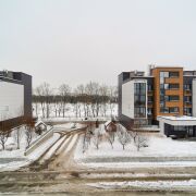 Дом повышенной комфортности. Стильный, сквозной подъезд, с возможностью подъема людей с ограниченными возможностями. Двор закрыт, что помогает сохранять комфорт, приватность и безопасность жителей.