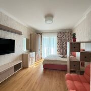 Встроенная кухня с доводчиками и техникой (духовой шкаф, варочная поверхность, посудомоечная машинка, СВЧ и холодильник). Укомплектована новой посудой (чайный сервис, тарелки, сковороды, столовые приборы, заварник для чая, разделочные доски, баночки для сыпучих продуктов и специй.) Так же есть кофемашина, чайник, тостер, блендер, телевизор!