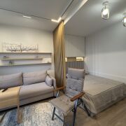 Дизайнерская квартира премиум-класса на 9-м этаже ЖК «Парк Челюскинцев». Закрытая территория с круглосуточным видеонаблюдением, детские и спортивные площадки, просторная наземная парковка. В шаговой доступности - метро «Парк Челюскинцев» и «Московская». Квартира оснащена современной бытовой техникой: встроенной плитой, духовкой/микроволновой печью, посудомоечной машиной, стиральной машиной с сушилкой, холодильником лучших мировых брендов. Установлен кондиционер и водонагреватель.