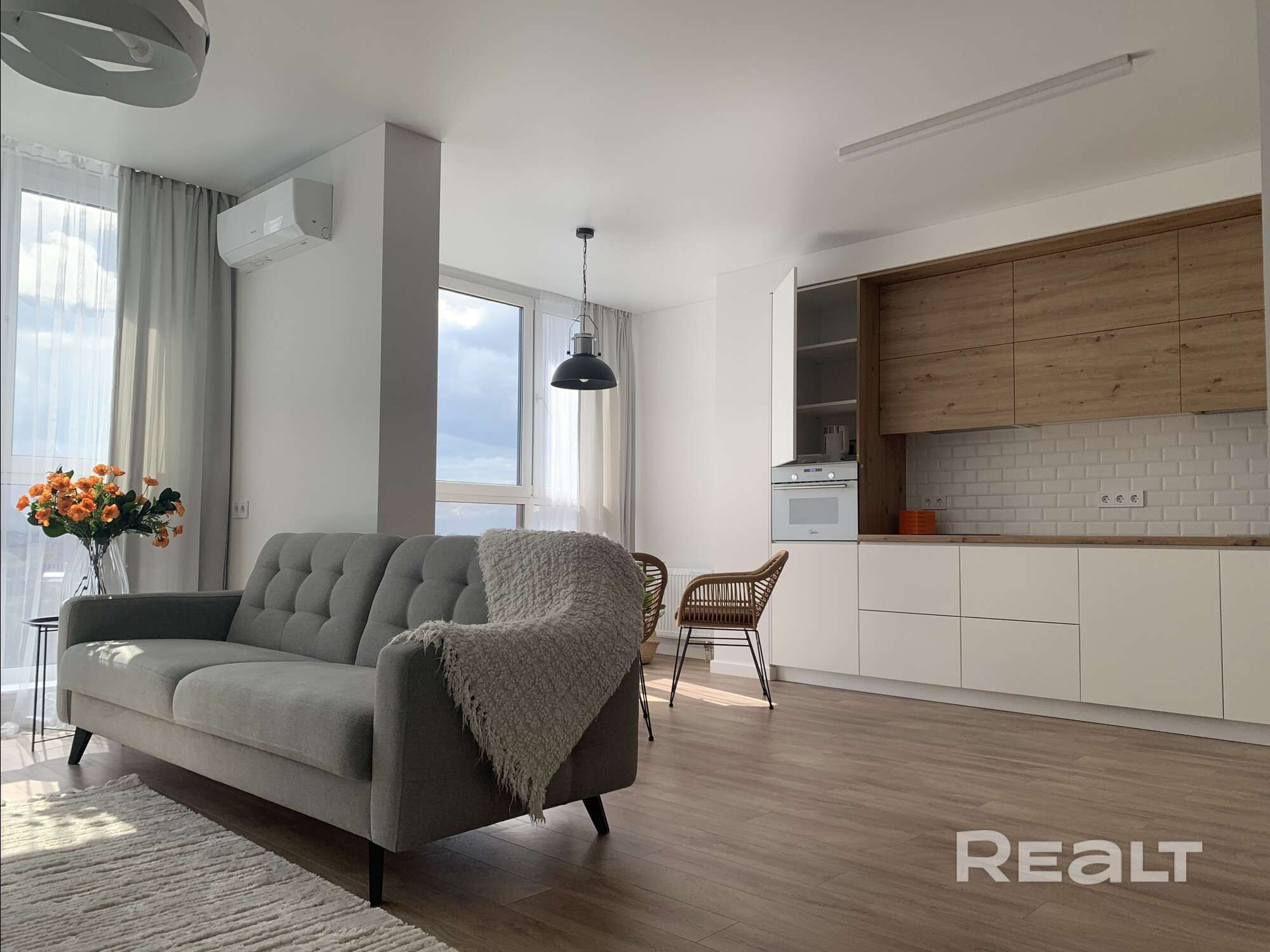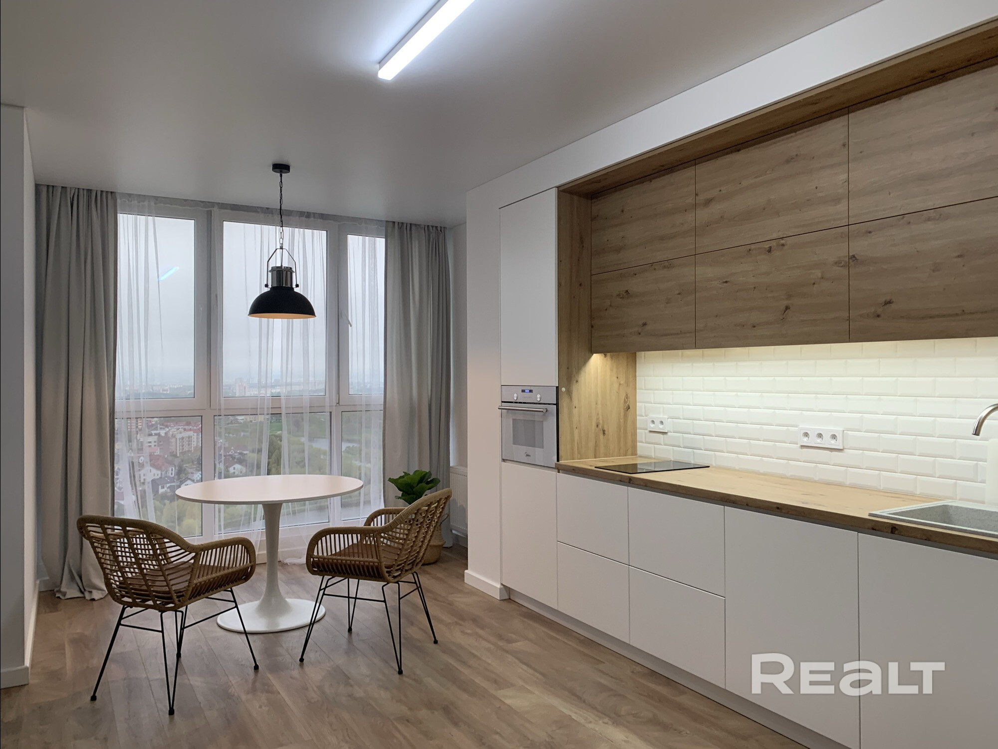 С 01.03.2026. Сдается просторная солнечная квартира с дизайнерским ремонтом. Квартиры с панорамным видом располагается на 23 этаже. Полная комплектация: мебель, техника,бойлер,большой телевизор, электрический камин, кондиционер, гардеробная. Отличная локация! Из квартиры открывается шикарный вид на Минск с высоты птичьего полета. Идеальный вариант для тех, кто ценит комфорт, уют и предпочитает жить в доме премиум класса! Проживание без животных!