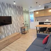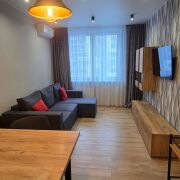 встроенная кухня, мебель, телевизор, холодильник, посудомойка, печь свч, раздельный санузел.