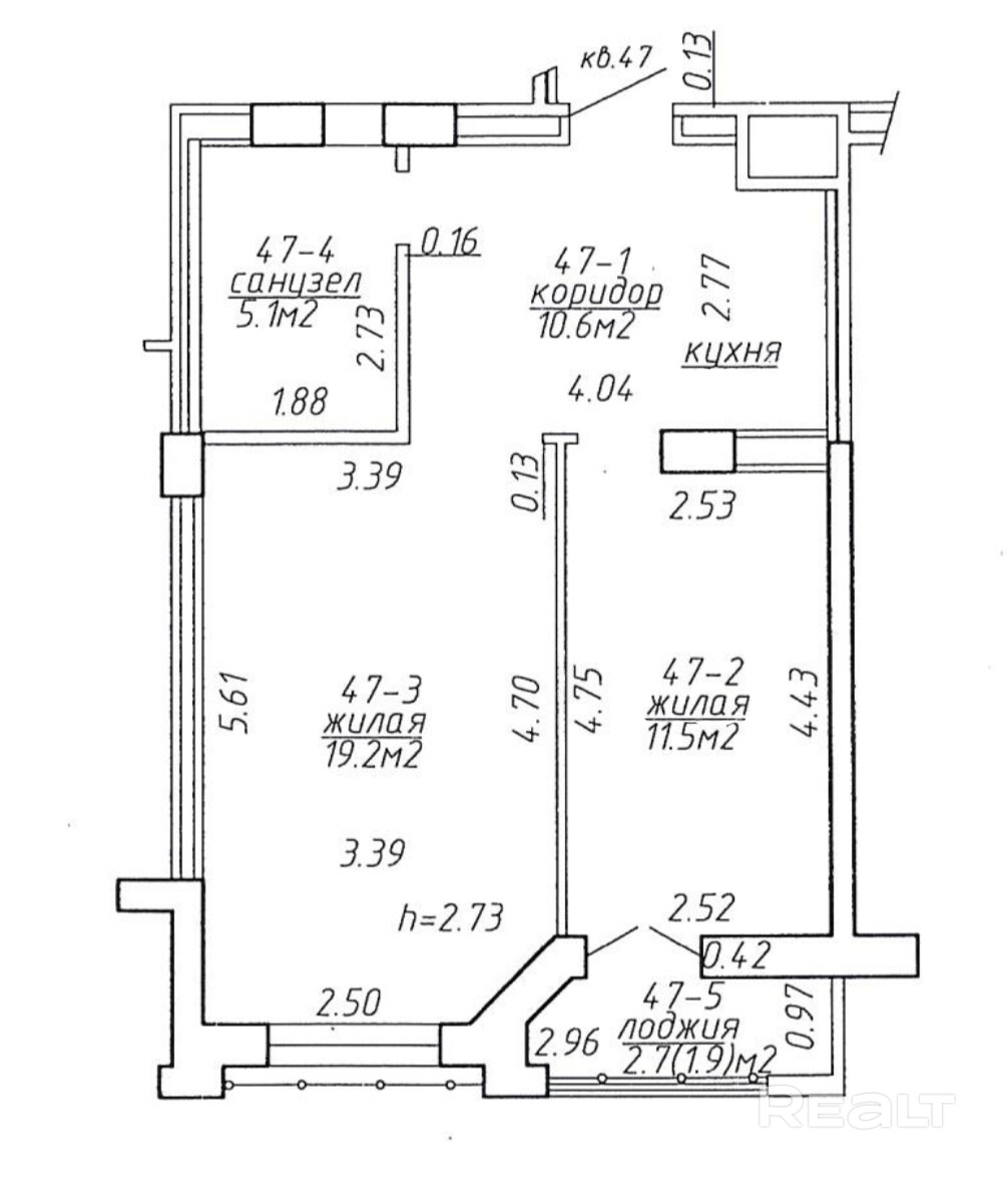 Две изолированные комнаты: 19,2 м2 и 11,5 м2.