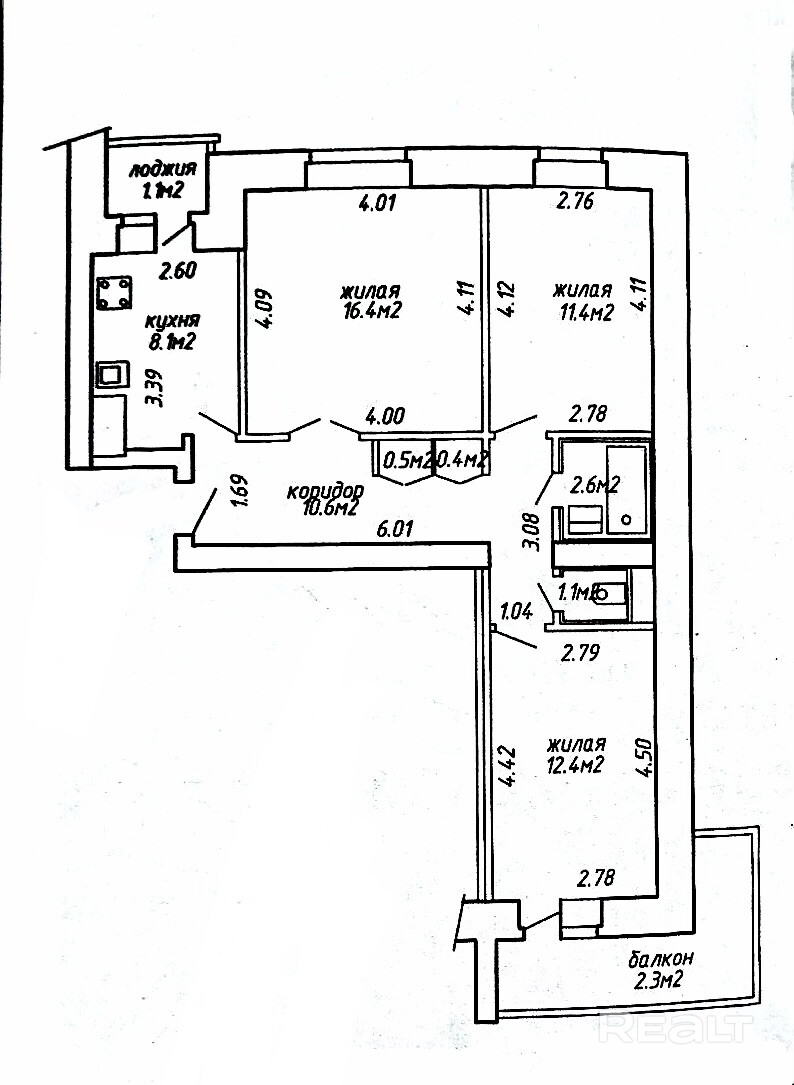 Планировка: просторная трехкомнатная квартира в стандартном 9-этажном доме.