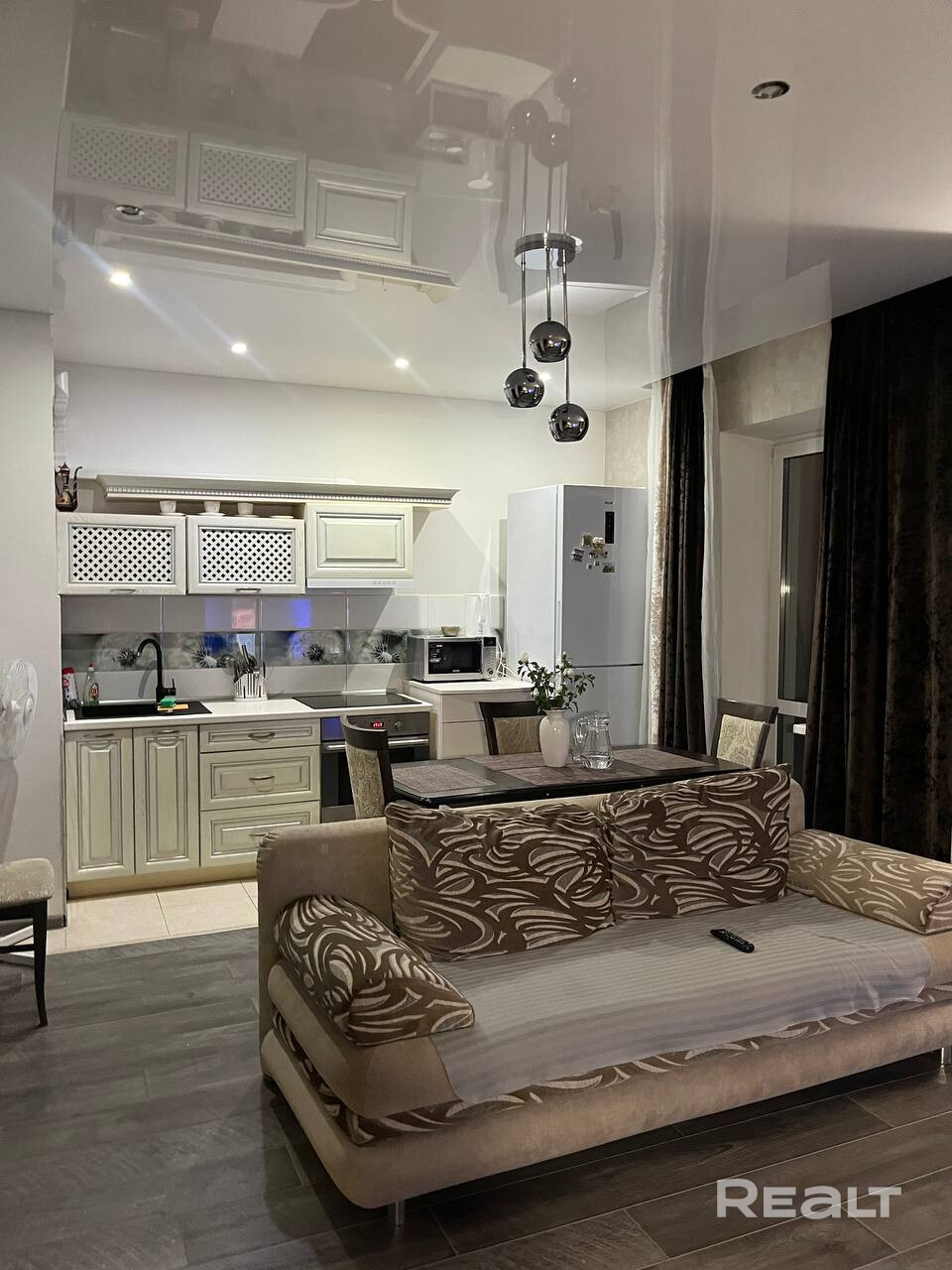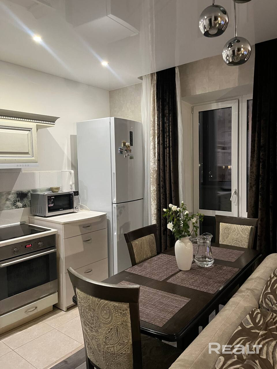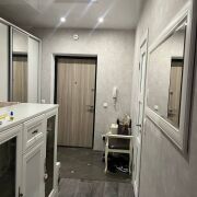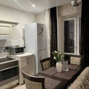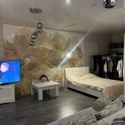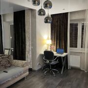 Уютная квартира-студия с дизайнерским ремонтом в ЖК «Грушевский посад». Кухня-гостиная с обеденной зоной, спальная зона с двуспальной кроватью, рабочее место у окна. Полностью меблирована и оснащена техникой: холодильник, духовой шкаф, варочная панель, микроволновка, ТВ. Натяжные потолки, встроенные шкафы-купе. Высокий этаж, панорамный вид на проспект. Метро «Грушевка» — 5 мин пешком. Дом 2016 г.п., подъезд 2.
