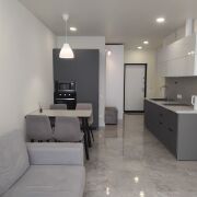 Интерьер квартиры выполнен по дизайнерскому проекту, из высококачественных материалов. Квартира оборудована всей необходимой бытовой техникой, включая посудомоечную и стиральную машину, духовой шкаф, телевизор, высокоскоростной Wi-Fi, городской телефон. Комнаты оборудованы кондиционерами. Рядом с комплексом в шаговой доступности расположены рестораны, магазины, медицинские центры, крупнейшие спортивно-оздоровительные объекты страны, школы и сады. Есть велопарковка.