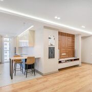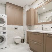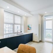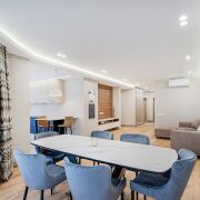 Квартира полностью укомплектована всей необходимой мебелью и техникой (посудомоечная машина, кондиционер, стиральная и сушильная машины, водонагреватель). Два санузла, гардеробная комната - в спальне, много шкафов и мест для хранения. Теплые полы! В доме оборудовано 4 скоростных бесшумных лифта "ORONA" Испания: 2 пассажирских, 2 грузовых. Лифт спускается в подземный паркинг. Квартира сдается только на длительный срок! Рядом с домом (и в самом ЖК) - кафе, рестораны, магазины, клиники, SPA. Через дорогу от жилого комплекса - водохранилище с зонами для отдыха, вело и пеших прогулок. Закрытая территория, электронный контроль доступа, консьерж, видеонаблюдение, служба охраны.