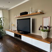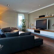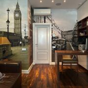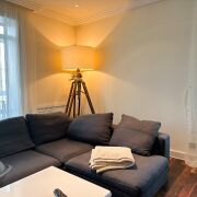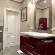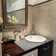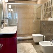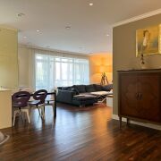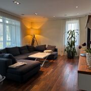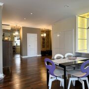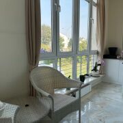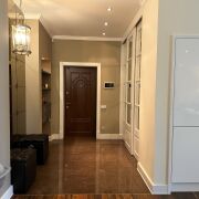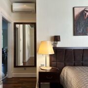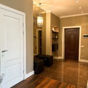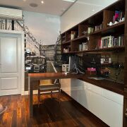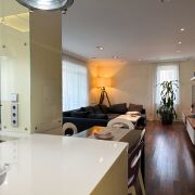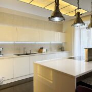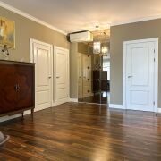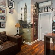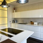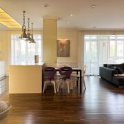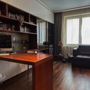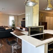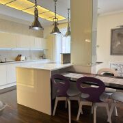 В спальне есть отдельная ванная комната и гардеробная. Просторная гостиная совмещенная с кухней, которая полностью оборудована всей необходимой техникой. Третья комната обустроена под кабинет (принтер и компьютер может остаться в квартире). В каждой комнате установлены кондиционеры.