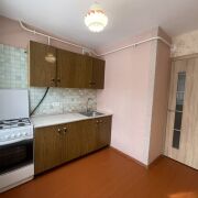Квартира с приятным ремонтом, из мебели лишь шкафчики навесные на кухне, газовая плита и рабочая морозильная камера.