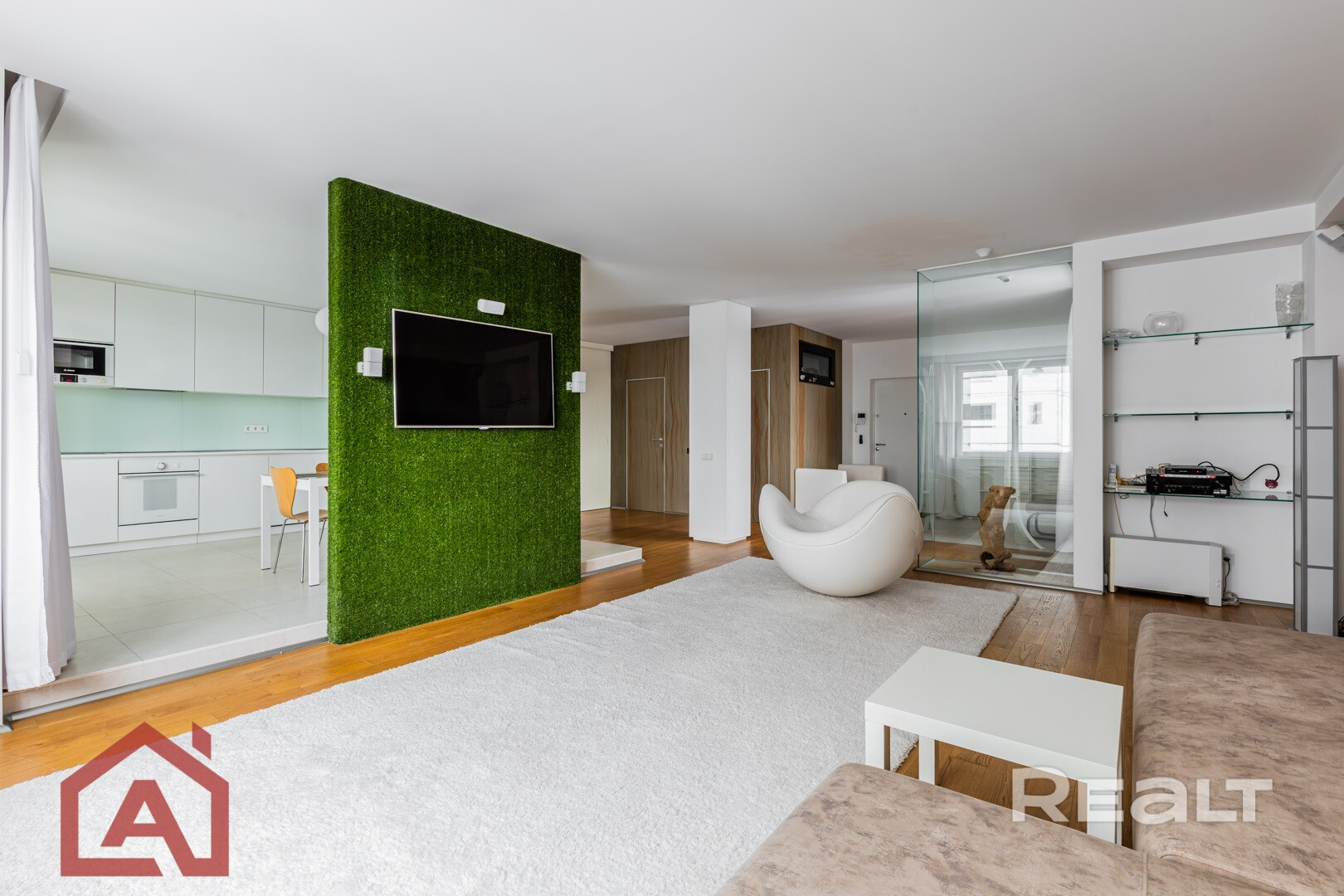 Две раздельные комнаты и кухня-гостиная.
