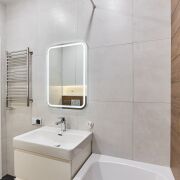 Квартира 78 кв м, 3 раздельные спальни, кухня 22 кв м, 2 сан узла, кондиционер, теплый пол (коридор и сан узлы) сдается с мебелью и техникой, высота потолков 2,71 м.