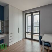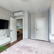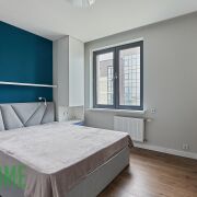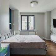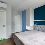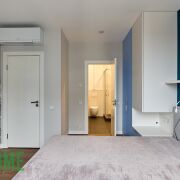 Хозяйская спальня со своим сан узлом, шкафами, двухспальной кроватью, грамотное зонирование светом, шторы блэкаут.