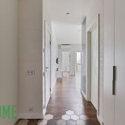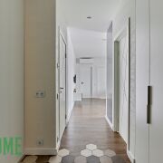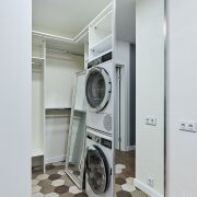 В коридоре установлены стиральная и сушильная машины, пространство оборудовано под гардеробную.