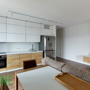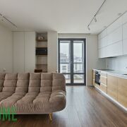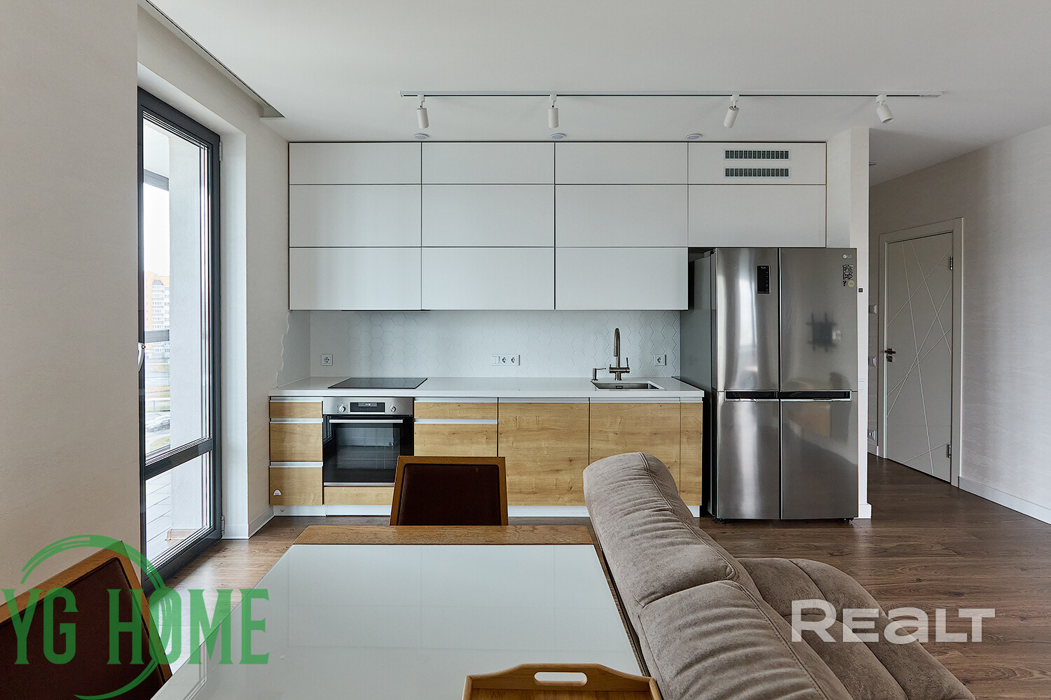 Просторная кухня, удобно оборудованное пространство, все под рукой, вызывает желание готовить, качественная бытовая техника - двухдверный холодильник, индукционная варочная панель, духовой шкаф, вытяжка, полноразмерная посудомоечная машина, микроволновая печь, мультиварка, установлен фильтр для питьевой воды. Достаточно места для хранения, посуды и техники, установлена система раздельной сортировки мусора. Гостиная зона с диваном и телевизором. С кухни и детской спальни выход на просторный балкон.