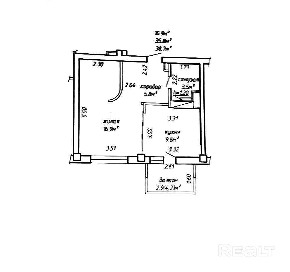 35.8 м²