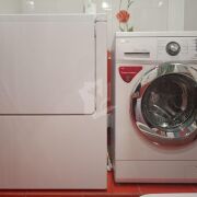 Бытовая техника : холодильник, индукционная плита, микроволновая печь, стиральная машина.